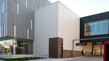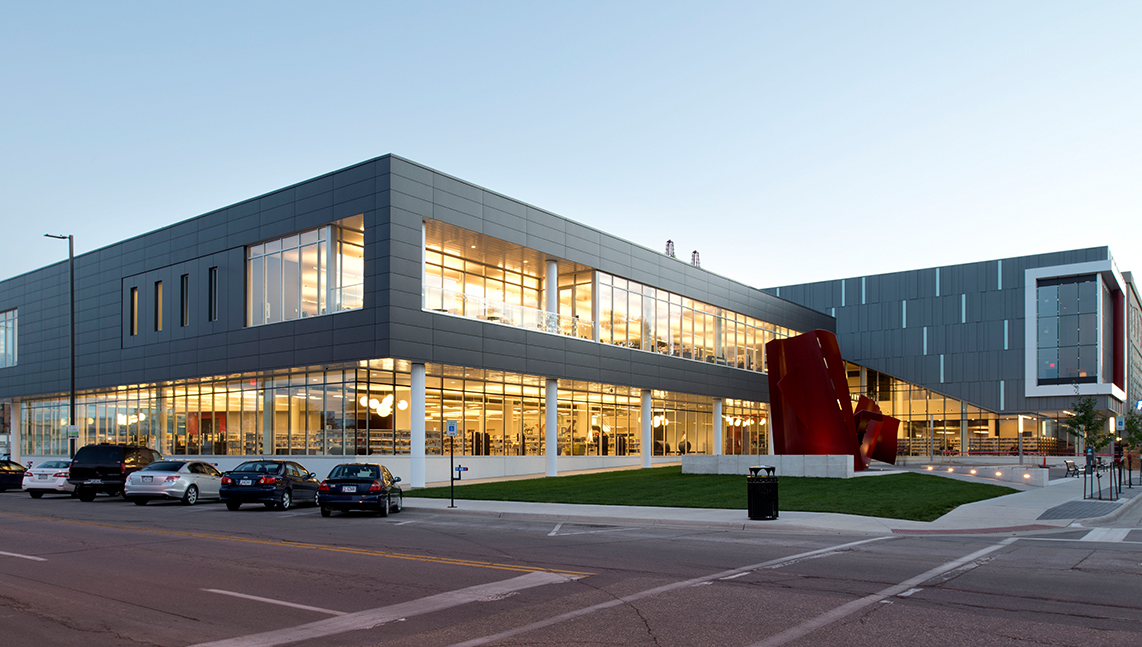 The Cedar Rapids Public Library is a vibrant multipurpose destination. The community drove the project to replace the previous library lost in a devastating flood. The design of the new structure will withstand future weather events and is a space to mix and collaborate. The architecture of the building gives a distinctive presence in the community. To distinguish the architecture, irregularly sized of Reynobond® Composite Material finished with the Design Line™ Zinc Patina coating were layered in random patterns on the exterior walls of the library’s three-story wing, creating an interesting visual counterpoint while also creating a sense of depth and contrast to the smooth surface materials used on other areas of the building.