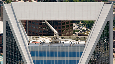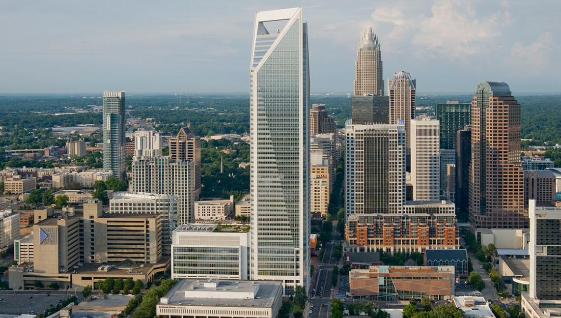 The Duke Energy Center is the physical representation of the energy giant’s commitment to the environment. The crystalline 50-story tower is the first LEED Platinum® office building in the country. It has a distinct, sculptural roofline with a handle-shaped bridge at the crown and faceted truncated corners.