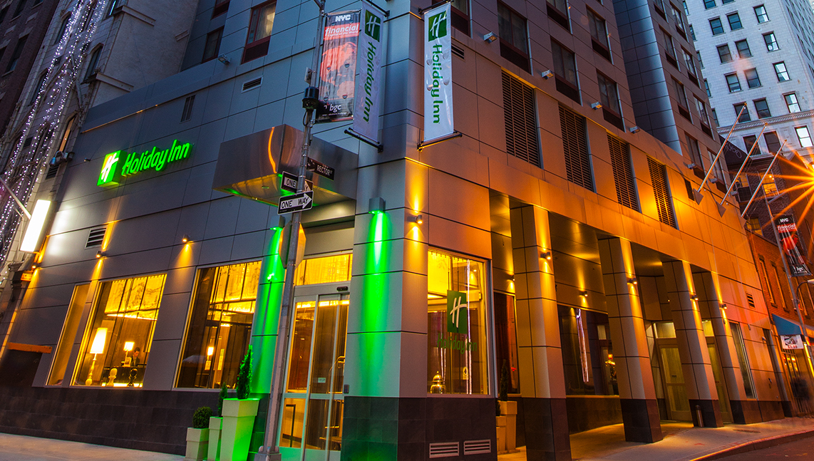 The Holiday Inn Manhattan-Financial District lights up the Wall Street neighborhood with its brilliant metal-paneled façade.
