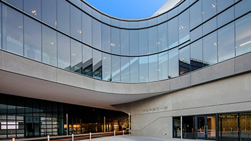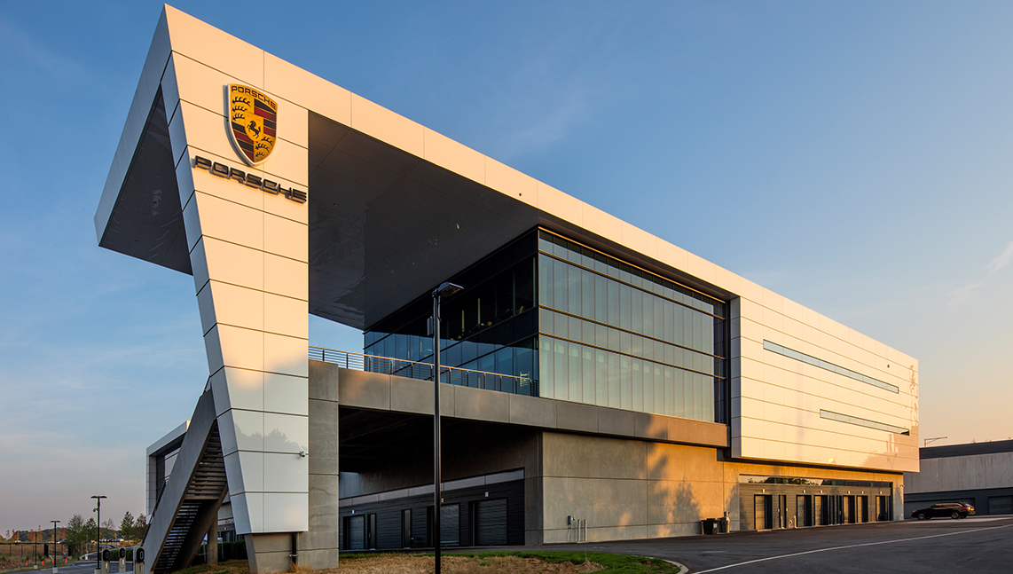 Crisp lines, sleek glass and geometric shapes form the alluring building façade. The contemporary aesthetic and high-performing features represent Porsche's reputation for quality.