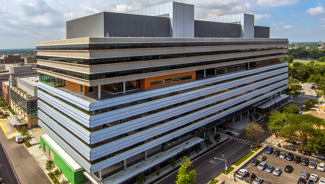 The University of Chicago Medicine Center for Care and Discovery is a 10-story medical facility. The 1.2 million square foot facility is the largest building on campus. The Center for Care and Discovery provides world-class medical and surgical care. It has 436 beds, 52 intensive care beds and 9 suites for advanced imaging and interventional procedures. There are 23 operating rooms designed to accommodate hybrid and robotic procedures.